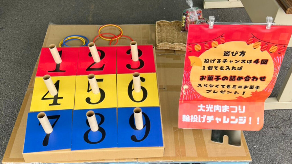 今回初の試みとして、お子様向けの輪投げコーナーを設置!