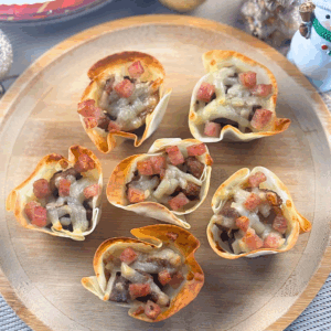 ⑤オーブン対応可のカップに餃子の皮を入れる