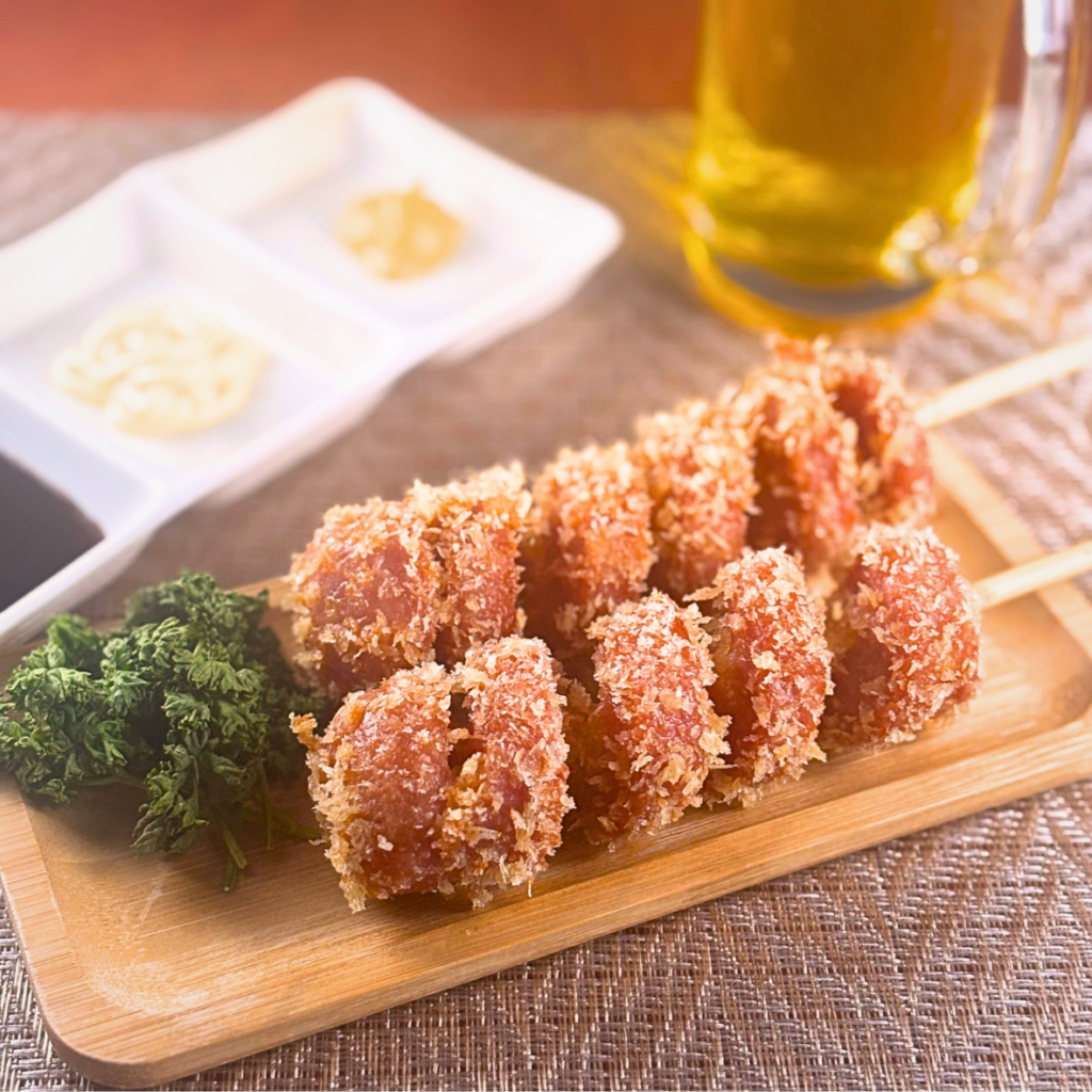 ⑥フライパンに油を入れて180℃になったらソーセージを入れて揚げる