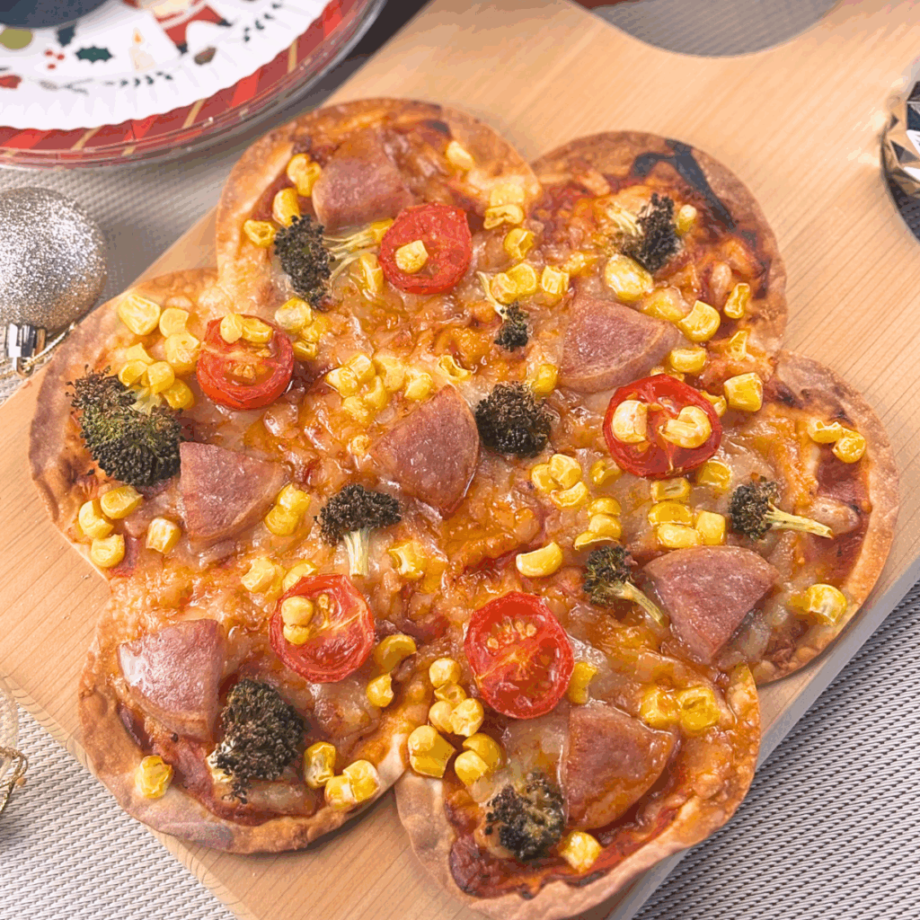 ①クッキングシートの上に餃子の皮を花の形になるように置く